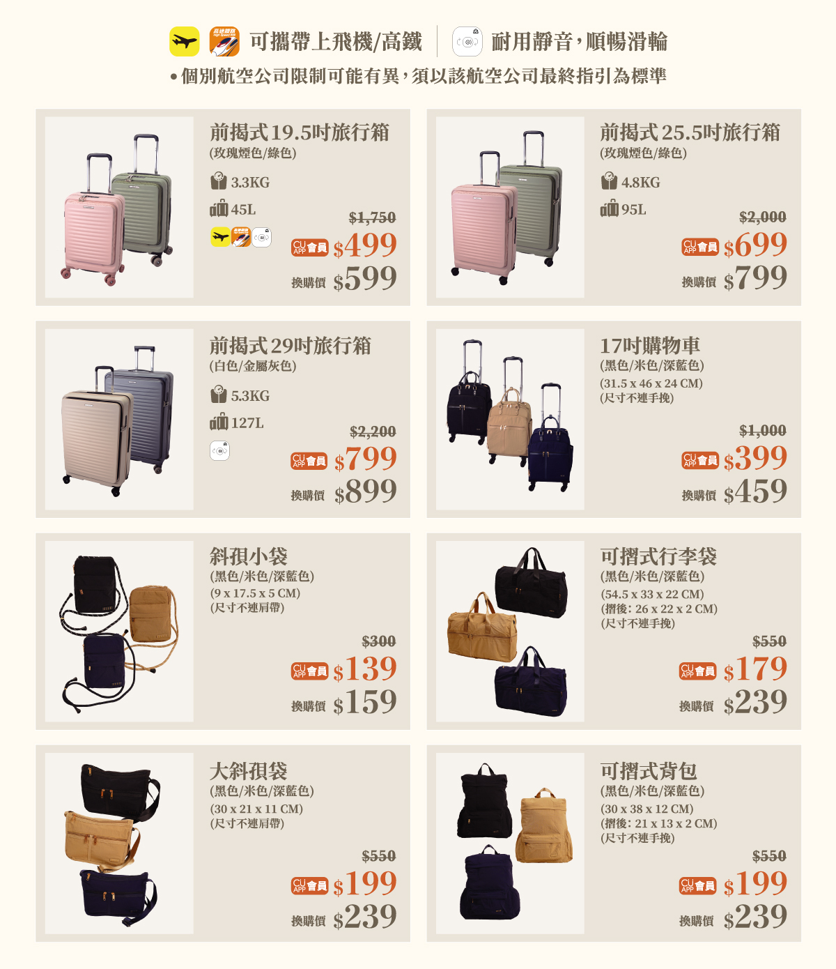 - 塑膠購物袋收費、送貨服務費、衣服修改費及行李維修費等雜項收費,均不計算為購物金額。