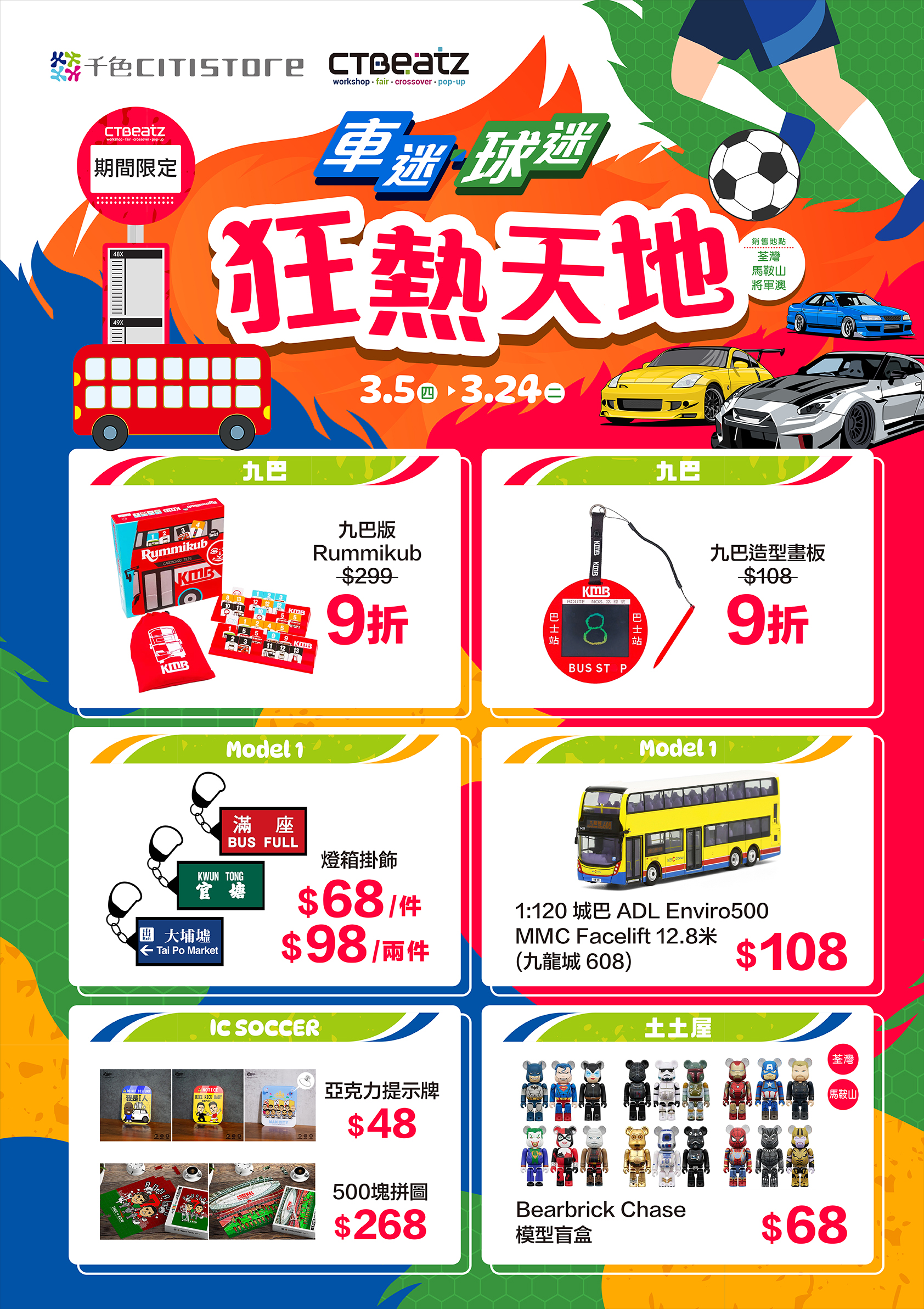 推廣優惠 【CTBeatZ】車迷球迷狂熱天地 推廣優惠最新推廣 【CTBeatZ】車迷球迷狂熱天地 05-03-2026 推廣地點:荃灣、馬鞍山、將軍澳店CTBeatZ 相關文章其他文章 抽濕防潮攻略 周一限定 千色樂悠優惠日 今期熱賣推介 店舖資訊 荃灣店 元朗店 馬鞍山店 將軍澳店 屯門店